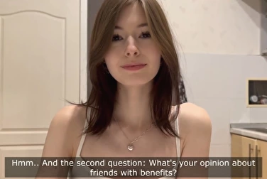 Разговоры — 00:03; переодевается — 00:59; пошлости — 04:17, 12:09, 18:05, 20:53; минет — 10:57, 16:49, 19:41; ласкает член — 13:22; скачет на члене — 14:12; секс боком — 18:14; секс на животе — 19:08; дрочит ему — 20:06; кончил в рот — 20:24; слизала сперму — 20:51