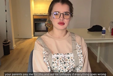 А я видел, ты трусики не надела! Хочешь вместо уборки куни и сперму?